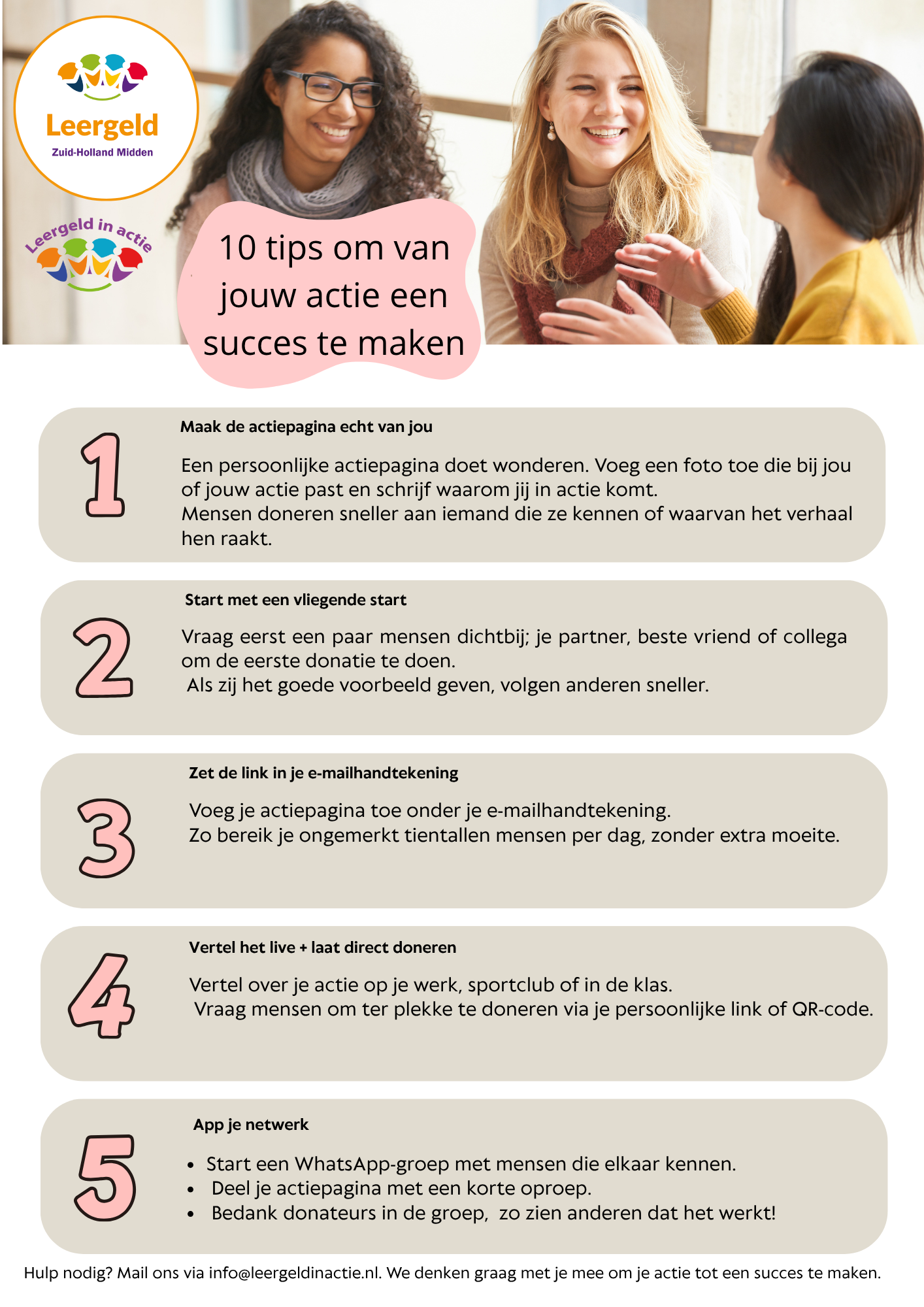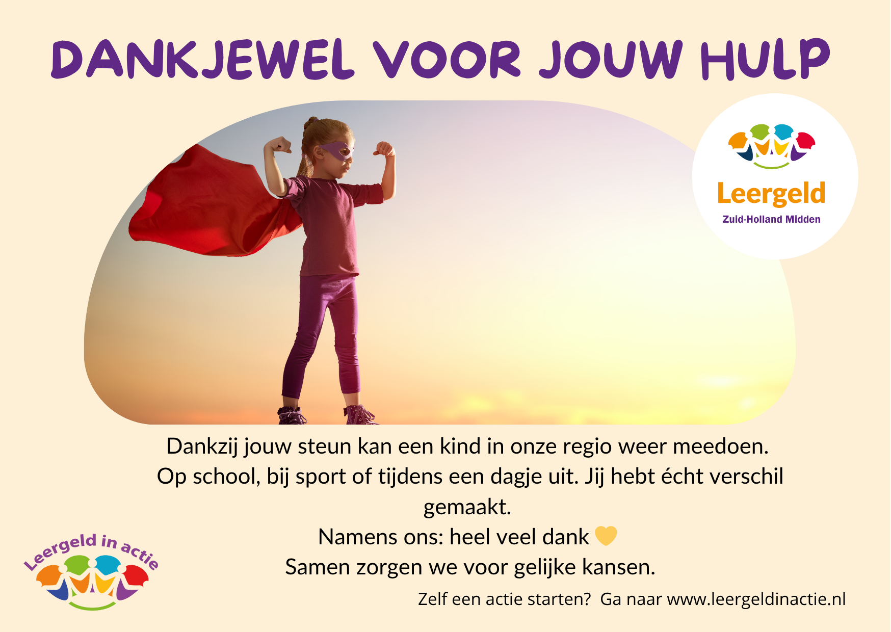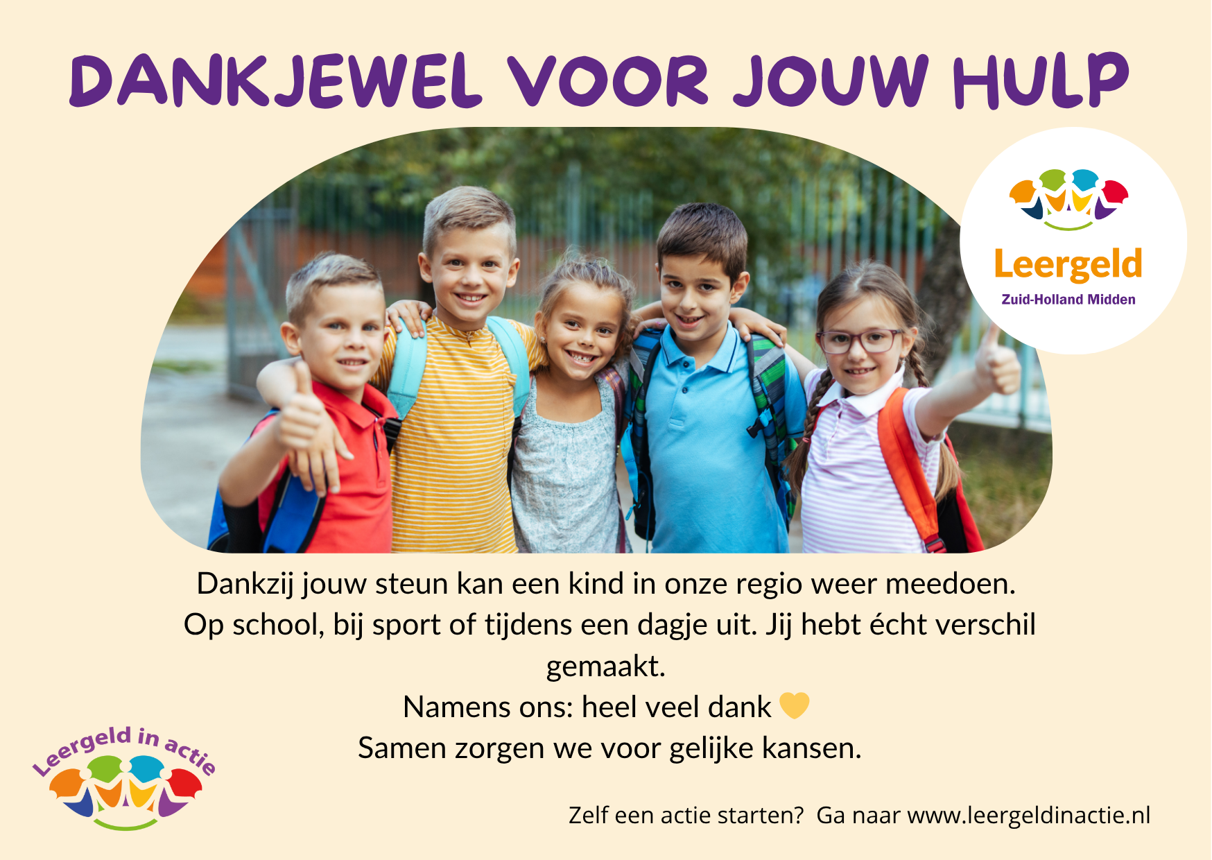 dan gaan we er samen een mooie actie van maken. Mail ons via info@leergeldinactie.nl